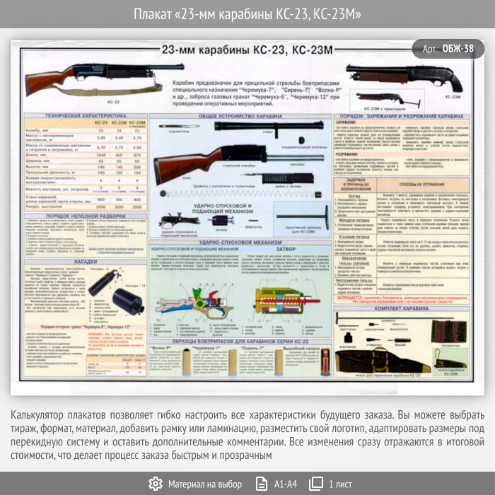 Плакат «23-мм карабины КС-23, КС-23М» (ОБЖ-38, 1 лист) в Сургуте купить