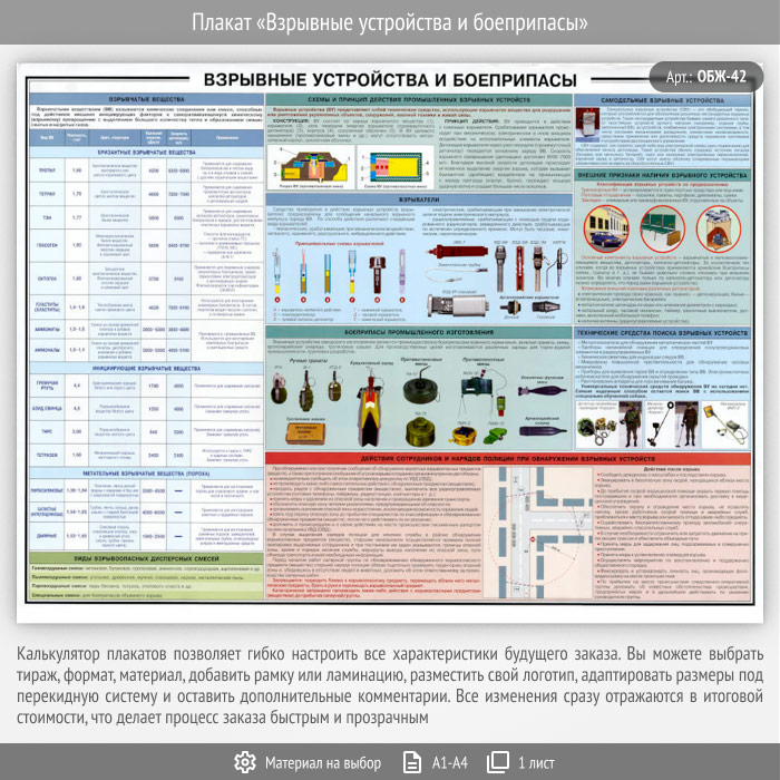 Плакат «Взрывные устройства и боеприпасы» (ОБЖ-42, 1 лист) в Сургуте купить
