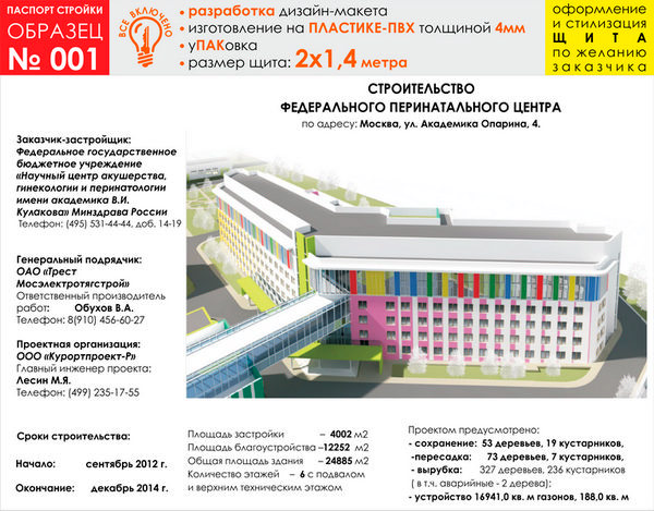 Паспорт стройки, образец № 1 (пластик 4 мм, 2000х1400 cм) в Сургуте купить