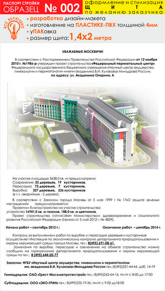 Паспорт стройки, образец № 2 (пластик 4 мм, 1400х2000 cм) в Сургуте купить