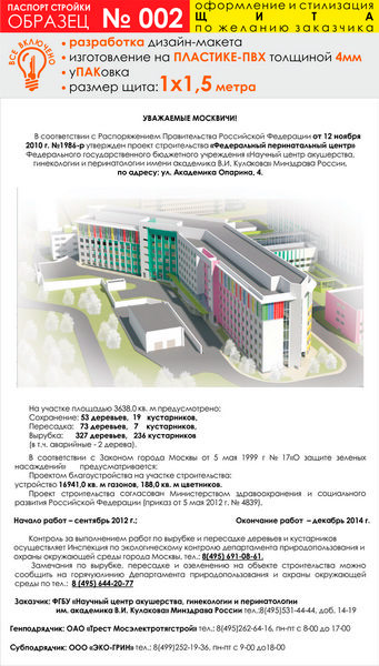 Паспорт стройки, образец № 2 (пластик 4 мм, 1000х1500 cм) в Сургуте купить