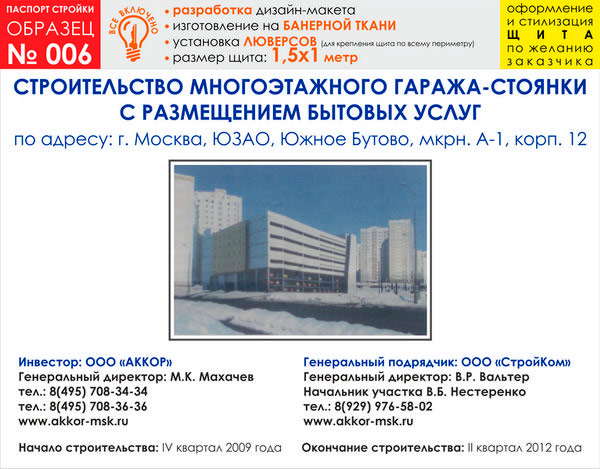 Паспорт стройки, образец № 6 (баннерная ткань, 1500х1000 cм) в Сургуте купить