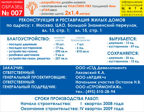 Паспорт стройки, образец № 7 (пластик 4 мм, 2000х1400 cм) в Сургуте купить