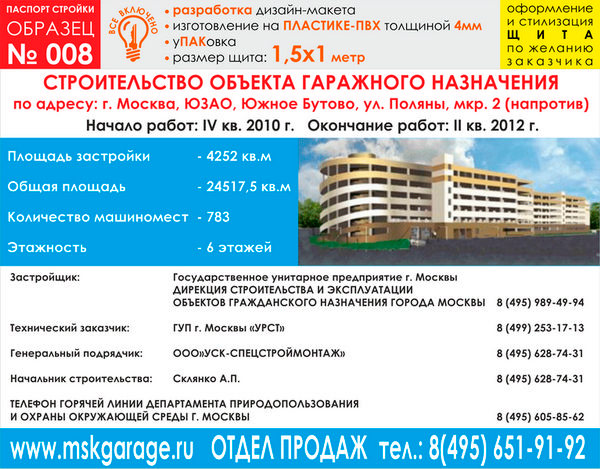 Паспорт стройки, образец № 8 (пластик 4 мм, 1500х1000 cм) в Сургуте купить
