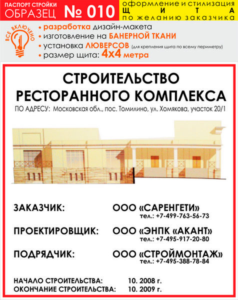 Паспорт стройки, образец № 10 (баннерная ткань, 4000х4000 cм) в Сургуте купить