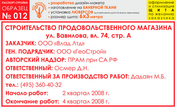 Паспорт стройки, образец № 12 (баннерная ткань, 6000х3000 cм) в Сургуте купить