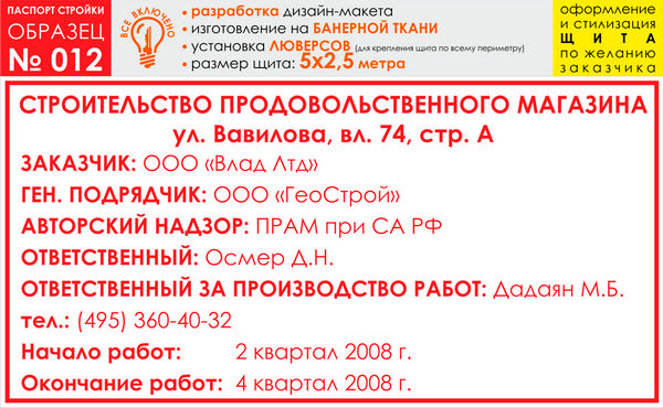 Паспорт стройки, образец № 12 (баннерная ткань, 5000х2500 cм) в Сургуте купить