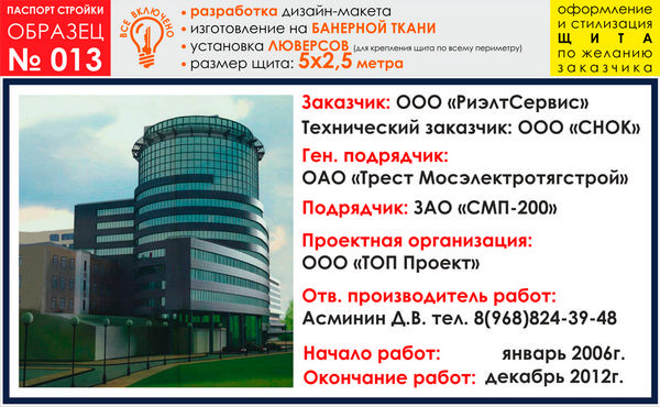 Паспорт стройки, образец № 13 (баннерная ткань, 5000х2500 cм) в Сургуте купить