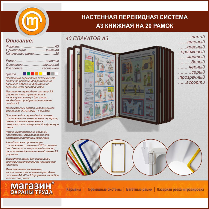Настенная перекидная система А3 на 20 рамок книжная в Сургуте купить