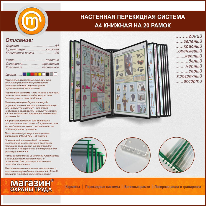 Настенная перекидная система А4 на 20 рамок книжная в Сургуте купить