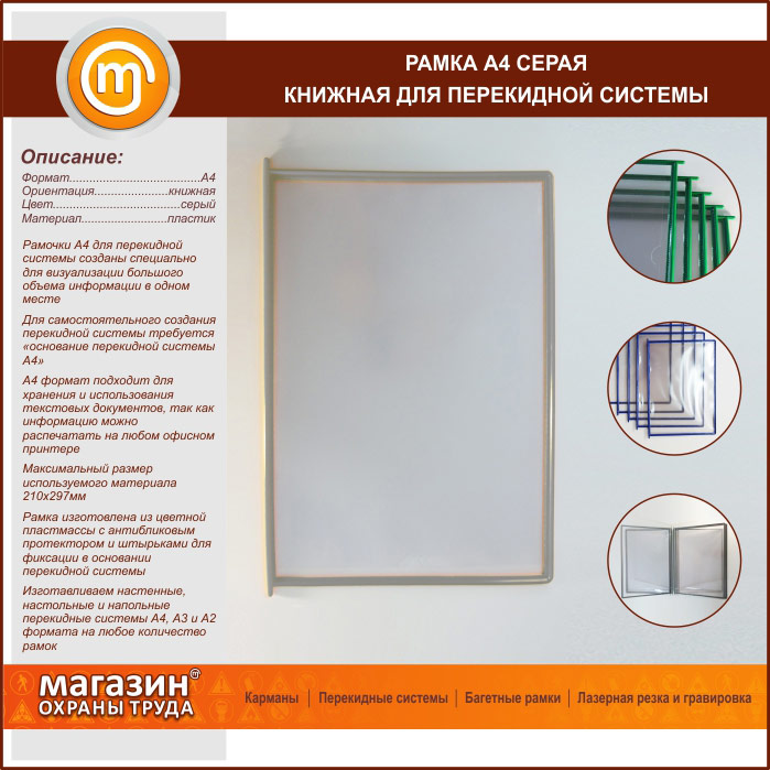 Рамка А4 серая книжная в Сургуте купить