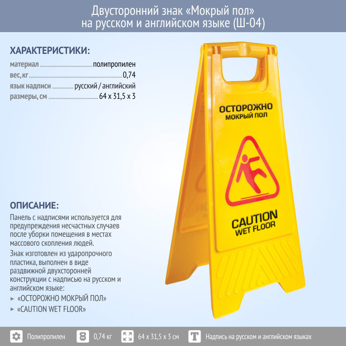 Знак «Мокрый пол» на русском и английском языке (Ш-04) в Сургуте купить