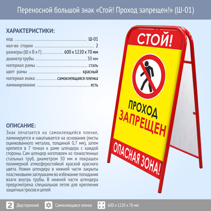 Переносной большой знак «Стой! Проход запрещен!» (Ш-01, двусторонний, самоклеящаяся пленка) в Сургуте купить