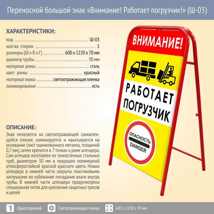 Переносной большой знак «Внимание! Работает погрузчик!» (Ш-03, односторонний, светоотражающая пленка) в Сургуте купить