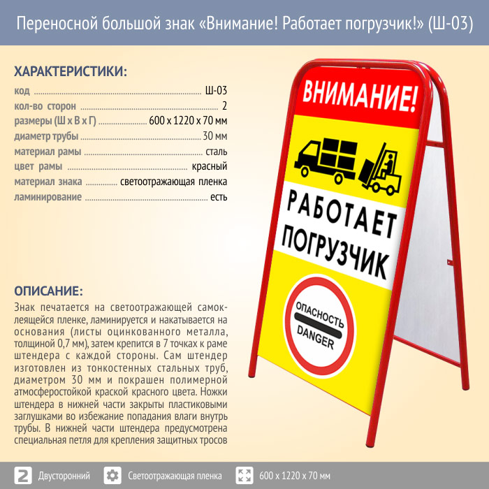 Переносной большой знак «Внимание! Работает погрузчик!» (Ш-03, двусторонний, светоотражающая пленка) в Сургуте купить