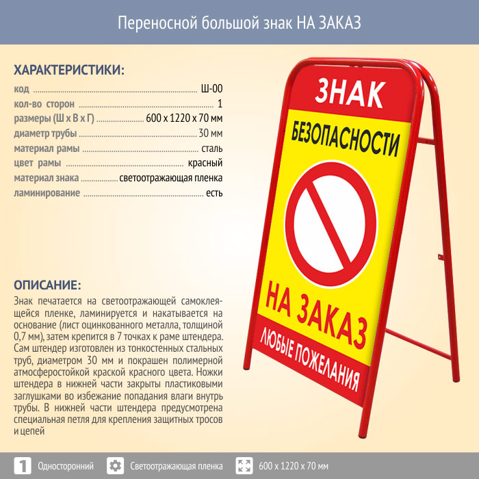 Переносной большой знак НА ЗАКАЗ (односторонний, светоотражающая пленка) в Сургуте купить