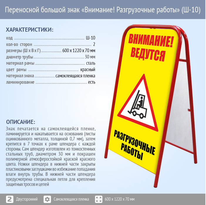 Переносной большой знак «Внимание! Разгрузочные работы» (Ш-10, двусторонний, самоклеящаяся пленка) в Сургуте купить