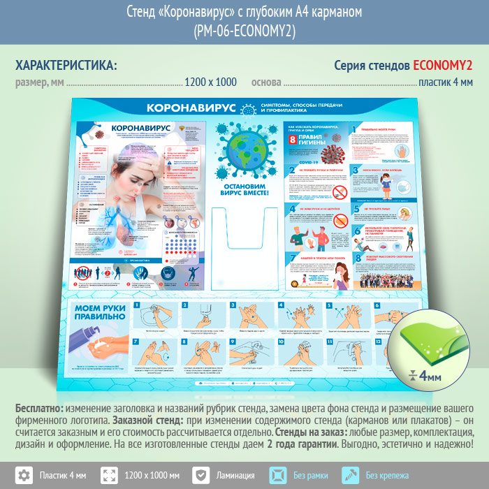 Стенд «Коронавирус» с глубоким А4 карманом (PM-06-ECONOMY2) в Сургуте купить