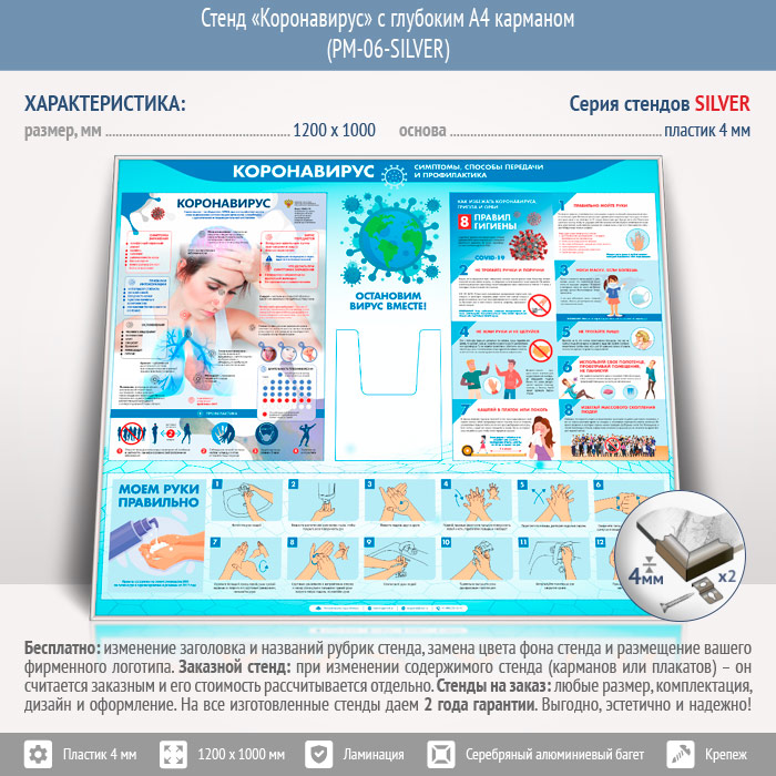 Стенд «Коронавирус» с глубоким А4 карманом (PM-06-SILVER) в Сургуте купить
