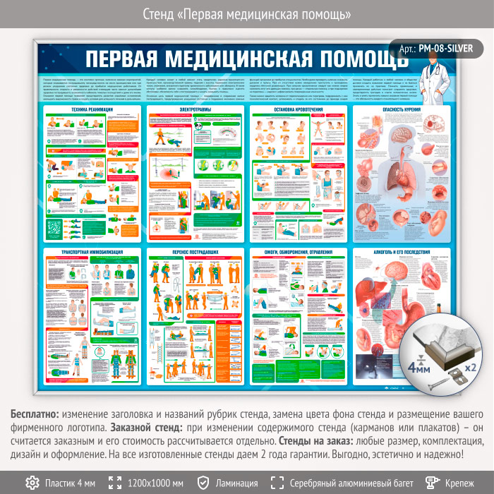 Стенд «Первая медицинская помощь» (PM-08-SILVER) в Сургуте купить
