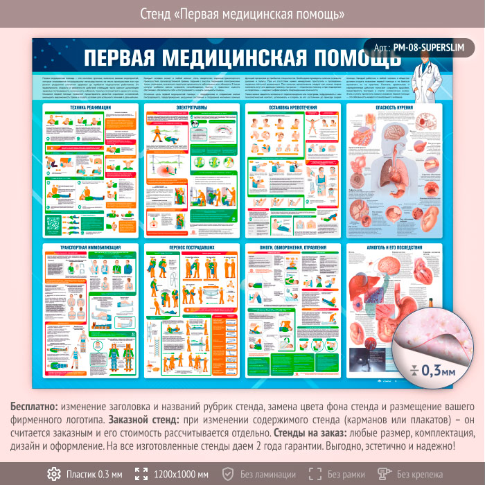 Стенд «Первая медицинская помощь» (PM-08-SUPERSLIM) в Сургуте купить