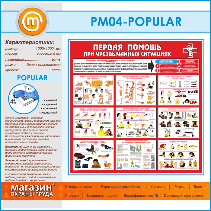Стенд «Первая помощь при чрезвычайных ситуациях» (PM-04-POPULAR) в Сургуте купить