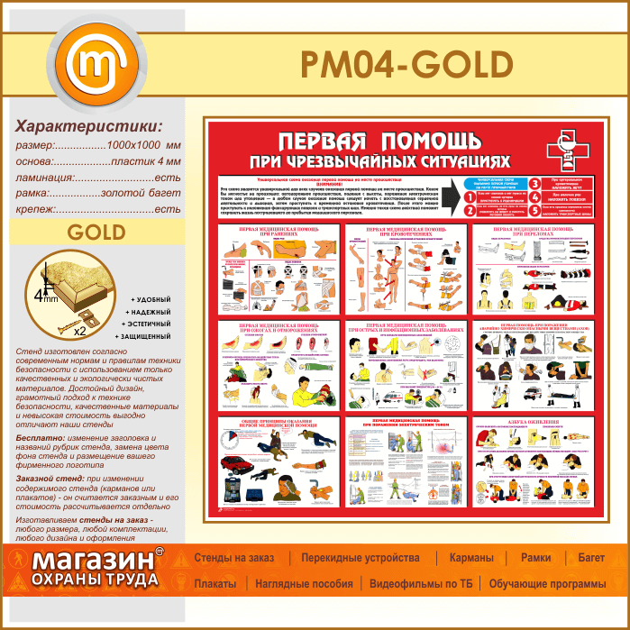 Стенд «Первая помощь при чрезвычайных ситуациях» (PM-04-GOLD) в Сургуте купить