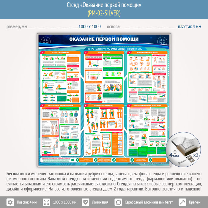 Стенд «Оказание первой помощи» (PM-02-SILVER) в Сургуте купить