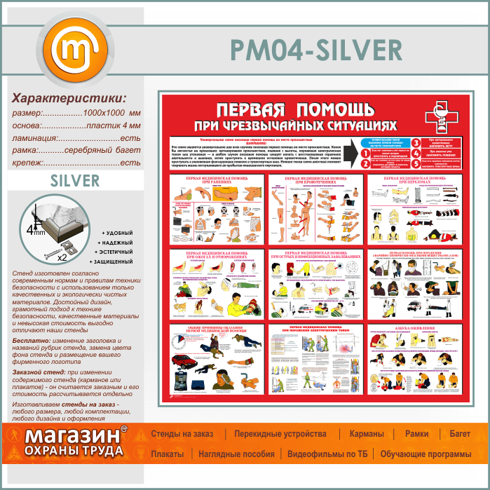 Стенд «Первая помощь при чрезвычайных ситуациях» (PM-04-SILVER) в Сургуте купить