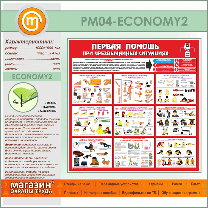 Стенд «Первая помощь при чрезвычайных ситуациях» (PM-04-ECONOMY2) в Сургуте купить