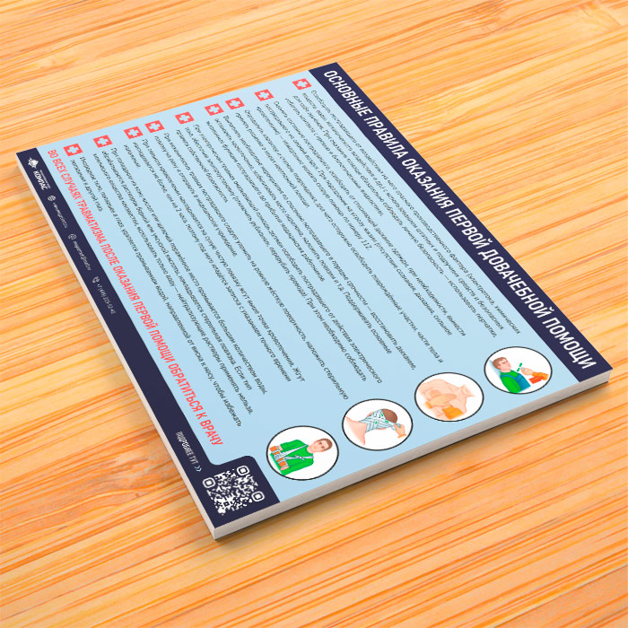 Плакат «Основные правила оказания первой доврачебной помощи» может быть изготовлен любого формата и размера, на бумаге, самоклеящейся пленке, пластике, баннерной ткани и металле. Разрабатываем, рисуем и изготавливаем плакаты на любую интересующую Вас тематику