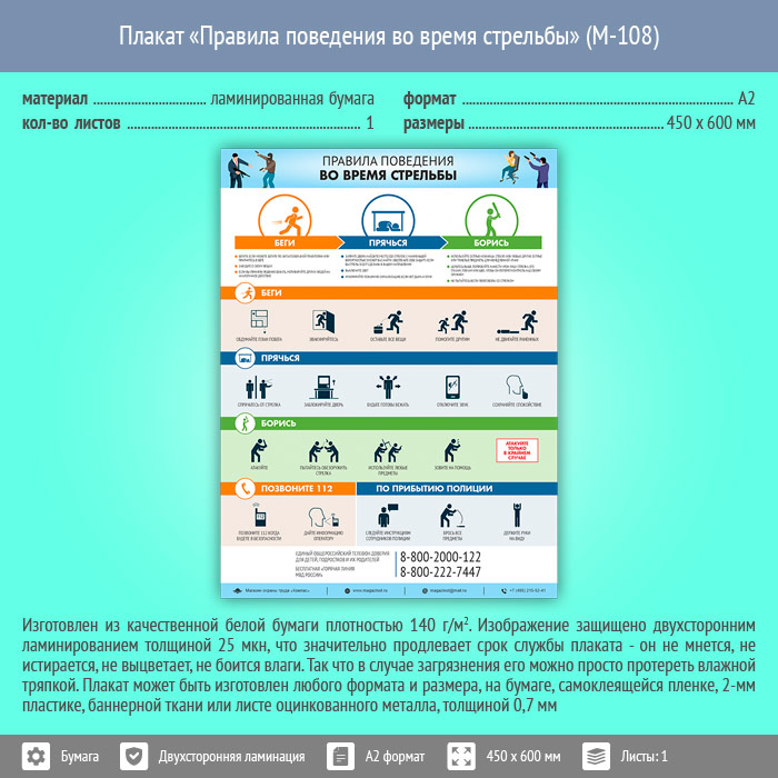 Плакат «Правила поведения во время стрельбы» (М-108, ламинированная бумага, А2, 1 лист) в Сургуте купить
