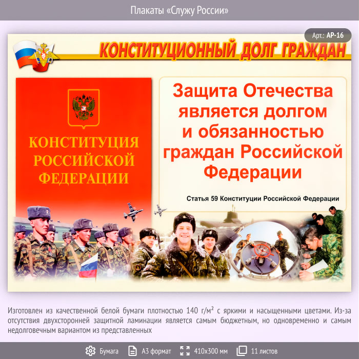 Плакаты «Служу России» (АР-16, бумага, А3, 11 листов) в Сургуте купить