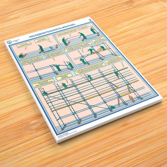 - Плакат «Последовательность монтажа» – порядок монтажа строительных лесов