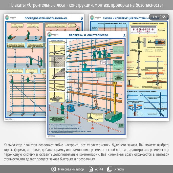 Комплект плакатов «Строительные леса - конструкции, монтаж, проверка на безопасность» из 3 листов – достойное качество и полезная информация по приемлемой цене