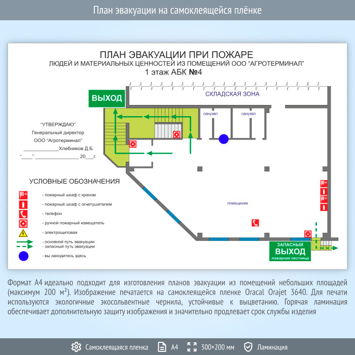 План эвакуации на самоклеящейся плёнке (А4 формат)