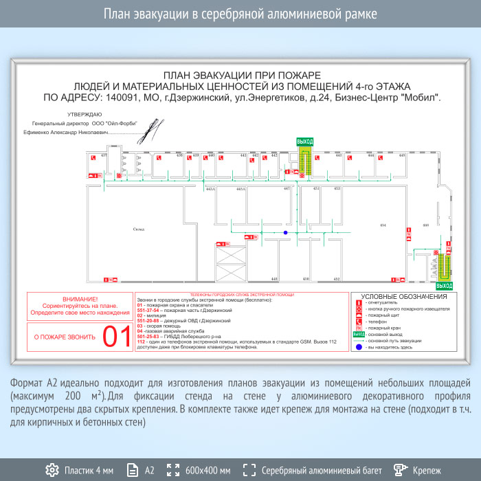 План эвакуации в серебряной алюминиевой рамке (А2 формат) в Сургуте купить