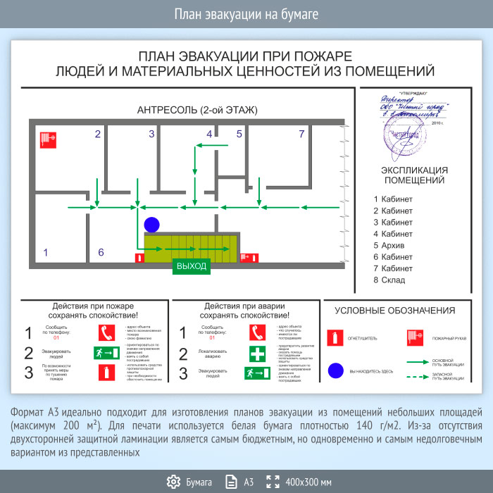 План эвакуации на бумаге (А3 формат) в Сургуте купить