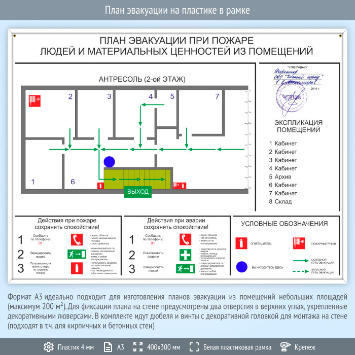 План эвакуации на пластике в рамке (А3 формат) в Сургуте купить