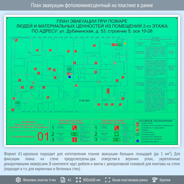 План эвакуации фотолюминесцентный на пластике в рамке (А1 формат) в Сургуте купить
