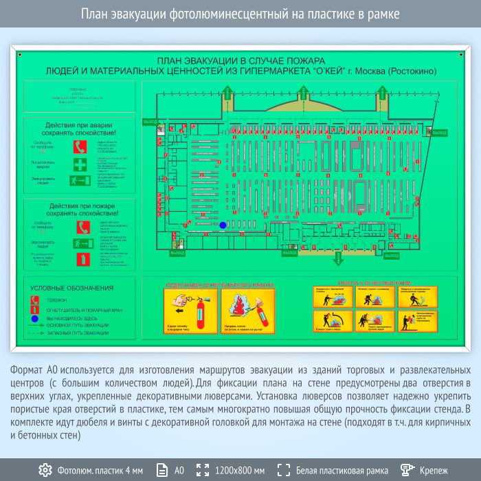 План эвакуации фотолюминесцентный на пластике в рамке (А0 формат) в Сургуте купить