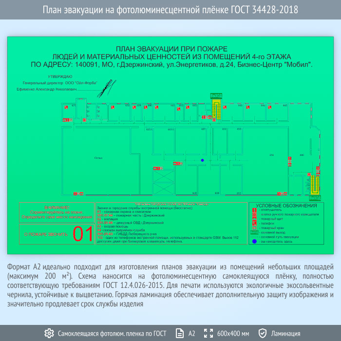 План эвакуации на фотолюминесцентной плёнке ГОСТ 34428-2018 (А2 формат) в Сургуте купить