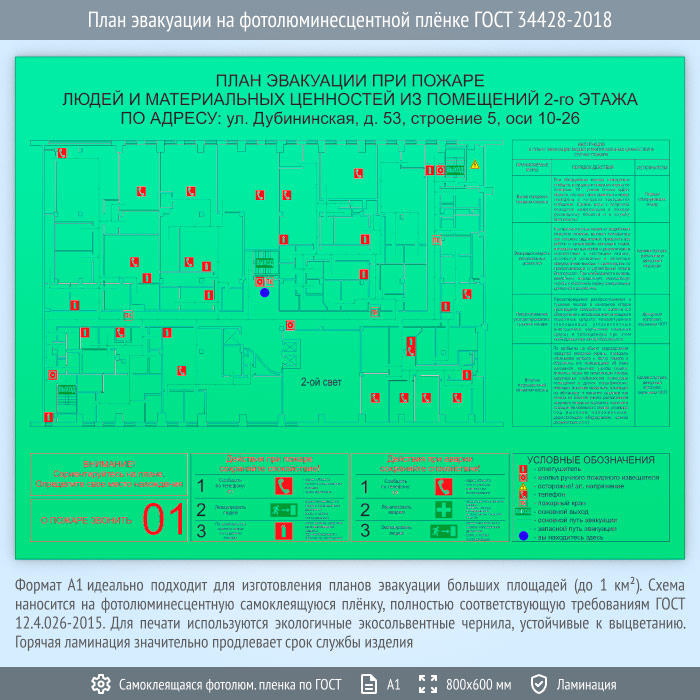 План эвакуации на фотолюминесцентной плёнке ГОСТ 34428-2018 (А1 формат) в Сургуте купить