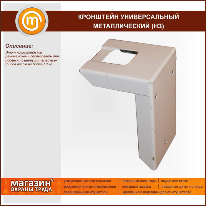 Главная Пожарная безопасность Подставки, кронштейны и шкафы для огнетушителей Кронштейн универсальный металлический (НЗ) |