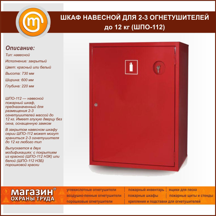Шкаф пожарный ШПО-112 навесной для 2-3 огнетушителей до 12 кг в Сургуте купить