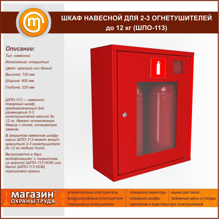 Шкаф пожарный ШПО-113 навесной для 2-3 огнетушителей до 12 кг в Сургуте купить