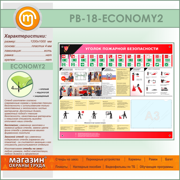 Стенд «Уголок пожарной безопасности» с карманом А3 формата (PB-18-ECONOMY2) в Сургуте купить