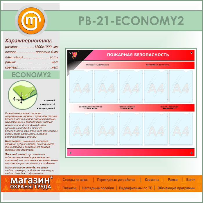 Стенд «Пожарная безопасность» с 10 карманами (PB-21-ECONOMY2) в Сургуте купить