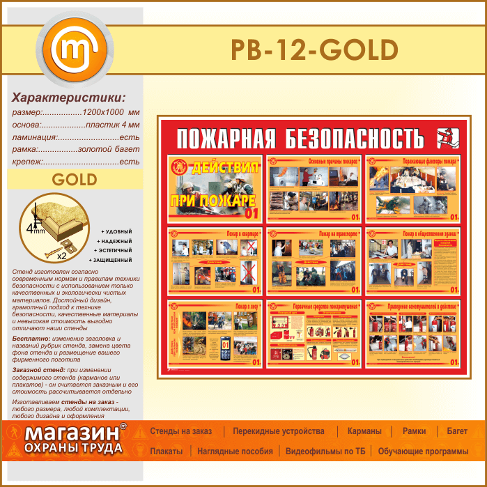 Стенд «Пожарная безопасность. Действия при пожаре» (PB-12-GOLD) в Сургуте купить