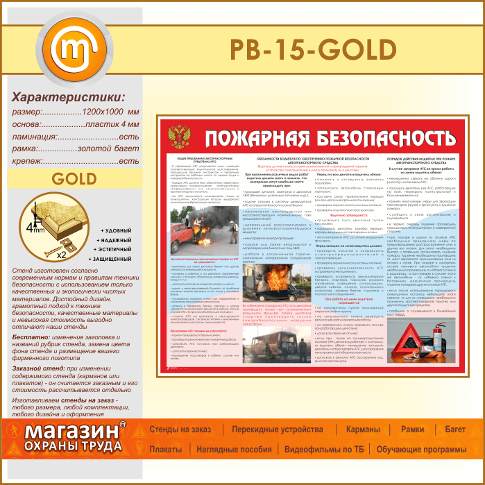 Стенд «Пожарная безопасность на автотранспорте» (PB-15-GOLD) в Сургуте купить